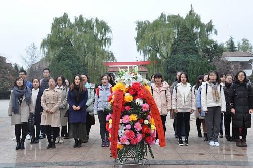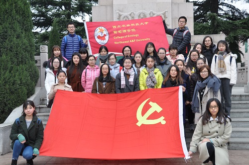 在扶眉战役纪念碑前,同学们首先齐唱国歌,为革命先烈默哀致敬、敬献花篮,随后面向鲜红的党旗,全体预备党员举起右拳,坚定而认真地向党誓言。
