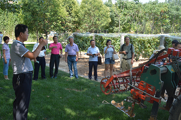 在张裕瑞那城堡酒庄酿酒葡萄基地,与会专家现场观摩了葡萄园夏季修剪机械,除草及中耕机械、自动喷药机械、冬季修剪机械等现代化葡萄园管理机械,并对实际生产实践中的成本进行了调研和对比。在随后的总结会上,与会专家一起研讨了我省葡萄生产机械化的紧迫性、可行性和实施步骤。