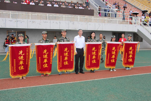 共同努力取得的成绩表示热烈祝贺!邓老师强调,军训生活增强了大家的国防观念和组织纪律性,激发了爱国热情,培养了吃苦耐劳的品德和集体主义精神,养成了良好的学风和生活作风,希望同学们将这些军训成果应用到日后的学习和生活中,进一步改善和加强我院学风建设、宿舍管理、文明行为养成等工作,都能以纪律严明、注重团结、积极向上的精神约束自己的言行,争做文明大学生!