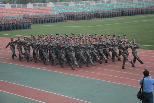 伴随着激昂的进行曲,分列式正式开始了。我院女生方阵作为分列式第一个方队出场,精神抖擞、飒爽英姿,整齐划一的动作尽显巾帼豪气。男生方队更是刚劲有力,口号声震耳欲聋,迈着整齐的步伐走过主席台,向大家展示了14天坚持不懈的军训成果。