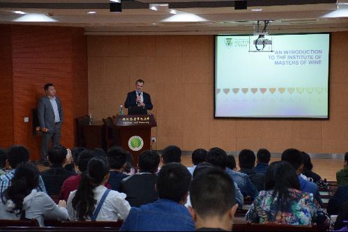 报告会伊始,我院姚卓凡同学用流利的英语作开场白并对MW进行介绍,使同学们对全英文报告提前做好准备。Roderick Smith MW首先用汉语“你好”向大家送上诚挚的问候。随后他用英文对葡萄酒大师协会的悠久历史及发展现状进行了详实的报告。并对大家讲解WSET1-4级考试内容、学时等情况,在讲解过程中结合自身经历,用诙谐幽默的语言,向大家展示了一个普通青年到葡萄酒大师的奋斗过程。最后,他亲切的告诉同学们,全球共有365位MW,期待在座的同学们会成为其中的一员,报告会在热烈的掌声之中落下帷幕。
