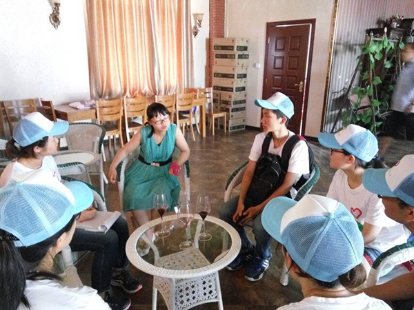 采访结束后,为了更好地了解葡萄产业区的酒庄对周围葡萄种植农户带来的影响,我们对三贤酒庄进行了参观采访。毕业于我院的10级学姐为我们介绍了酒厂与周围农户的交集。在交谈中她提到,在发酵期的时候,酒庄会雇请非技术人员工作,主要是周围四五十岁的农民劳工。
