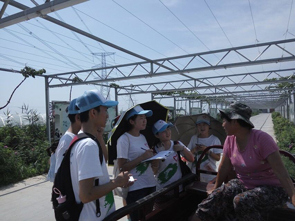 17日上午,队伍乘车来到下吉镇的渭北葡萄产业园,为了解产业园附近葡萄种植的情况,我们对周围的农户进行了采访。通过本次采访,我们了解到,渭北产业园区葡萄种植历史约八九年,每户大约七八亩,种类大多为红提。农户们将葡萄作为主要收入来源,近两年在经济大气候不景气的情况下,加上葡萄病虫害影响,渭北产业园区葡萄种植面积略有收缩,葡萄价格有所降低。政府针对这一情况出台了对农户进行技术指导等帮扶政策。