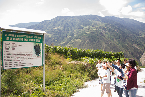 赴四川省葡萄酒产区调研队抵达第一站--小金神沟九寨红葡萄酒生产基地,传说中最接近太阳的葡萄酒就产自这里。在这一天的走访调研中,我们不仅领略了高山葡萄的独特魅力,更在乡政府的介绍中了解到企业在精准扶贫方面为社会做出的巨大贡献。