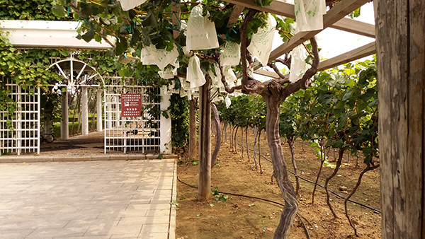 进入酒庄后首先映入眼帘的是长达500米的鲜食葡萄长廊,据酒庄的周主任介绍整个葡萄公园共种植了来自世界各地的180多种名贵葡萄,酒庄每年都会举办大型的葡萄风情采摘节,吸引了大量的游客。