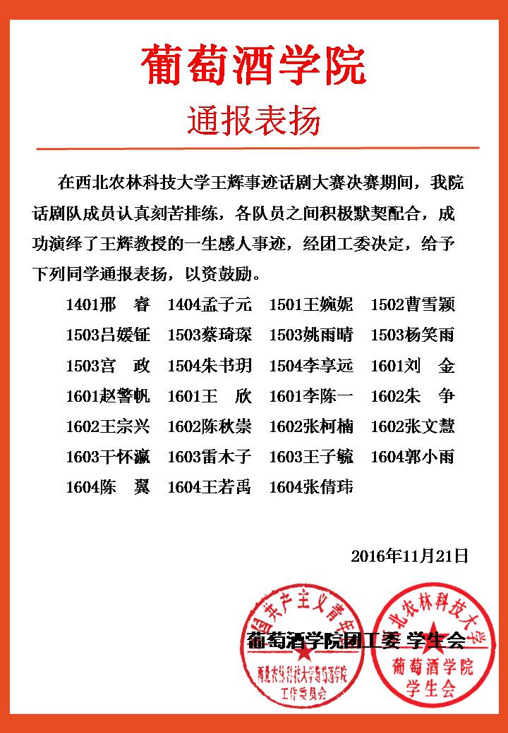 葡萄酒团(2016)41号通报表扬_69书吧 69书吧