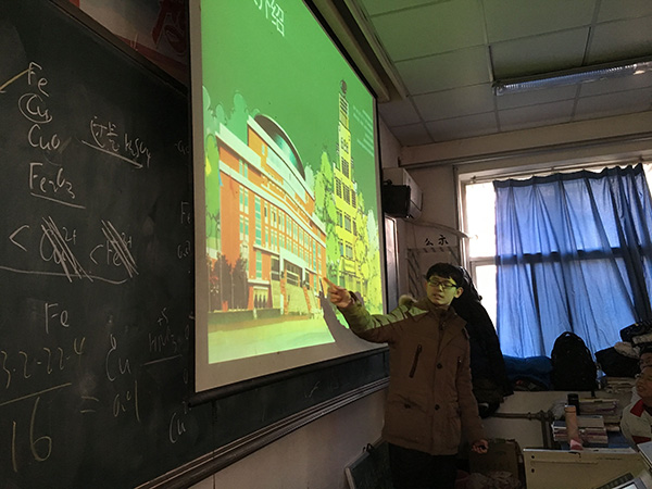 在本次活动的负责人的带领下,我们一行人来到高三班级中,从于右任先生创办我校说起,介绍我校的大楼、大师以及大爱,让同学们充分了解与感受到我校的综合实力与人文关怀。我们也向他们讲述了我校的69书吧