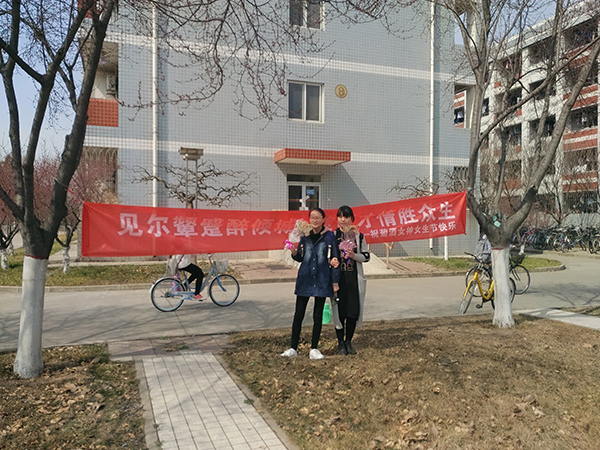 在北校西区八号宿舍楼下举办以“遇见最好的自己”为主题的女生节系列活动。