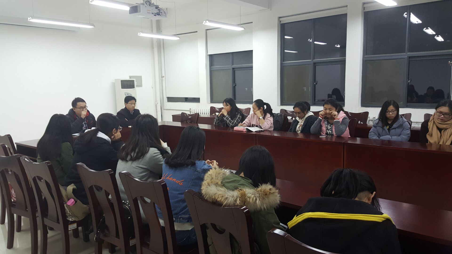 会议室顺利召开。班会由15级辅导员赵星宇老师,154班班主任秦义老师主持召开,全体同学共同参加。班会上两位老师带领同学们对上学期进行了回顾总结,同时与同学们深入交流,共同为新学期进行了计划安排。