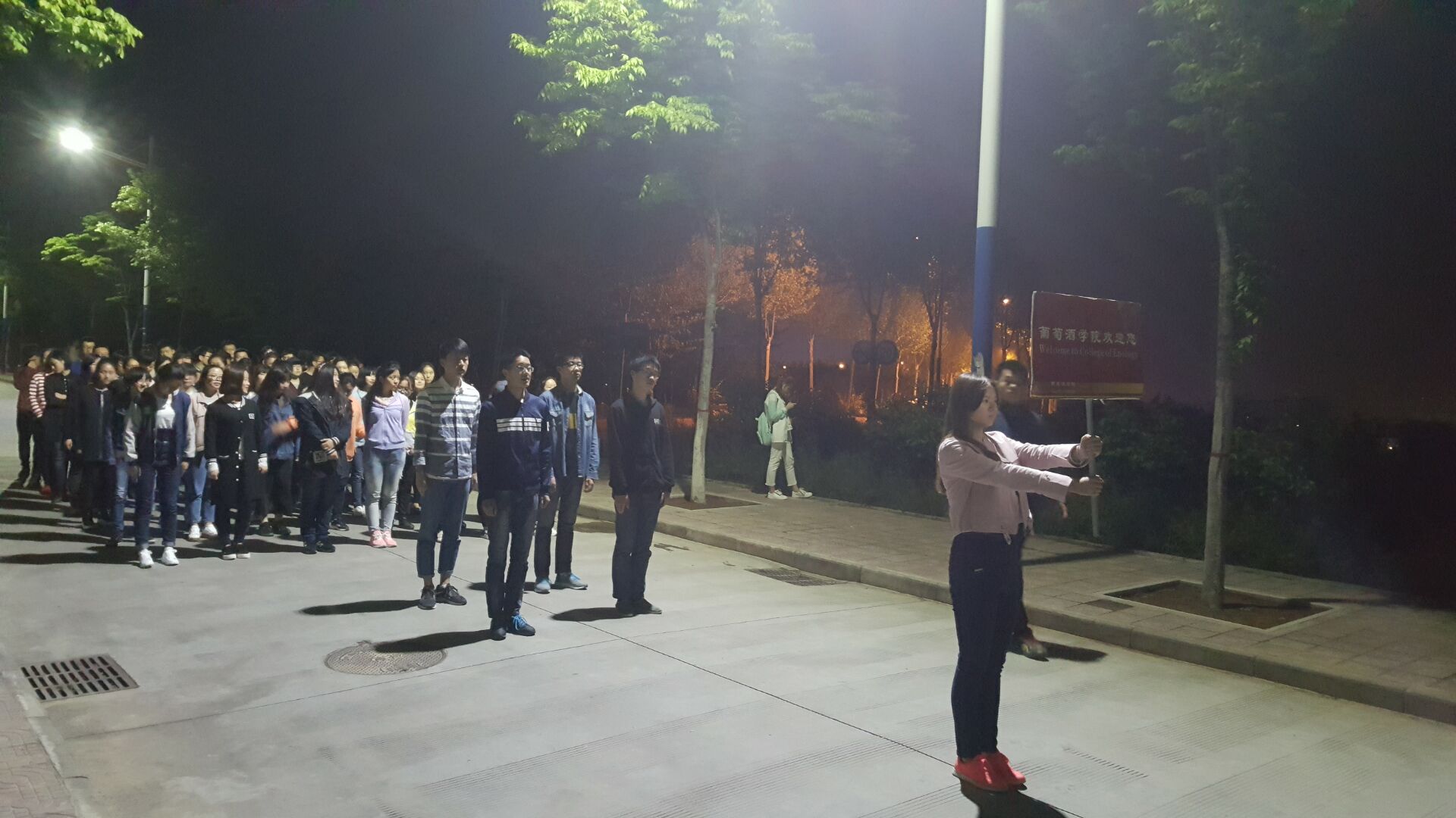 刻苦训练,斗志昂扬。方阵训练于第六周正式开始,每天晚自习之后,在右任书院旁边刻苦进行。两位学长带领同学们从基本的踏步到后来的齐步,从对摆臂的矫正到后来与音乐地配合,一路完成训练目标,取得了卓越的成果。经过两个礼拜的训练,如今同学们的方阵可谓是整齐划一,神采飞扬。那一句“扬帆起航,劈波斩浪,看我葡酒,争做一流” 的响亮口号,淋漓尽致地体现出了整个方阵的勃勃斗志。