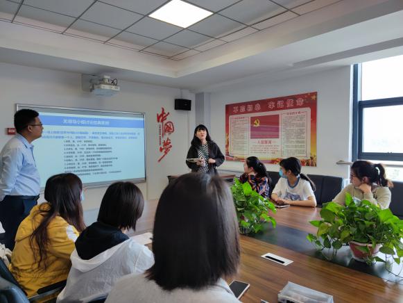 党团活动室举行求职面试指导活动,邀请学校职业规划与就业指导教研室兼职教师周海渊为2022届求职毕业生进行面试培训与实践指导。