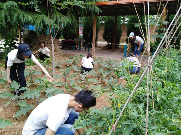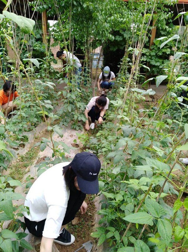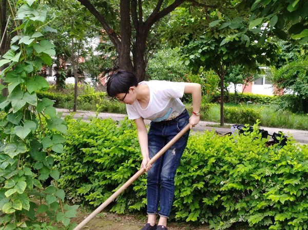 上午9:00,大家到达目的地,在福利院负责人的带领与安排下,志愿者们主要负责为菜地除草的工作。于是大家即刻就开始干活,铲的铲地,拔的拔草。从一开始的不适应,到后来的得心应手,整个过程中没有一个人喊累,甚至还有说有笑。在一个多小时的劳动之后,整块地的草被大家除的异常干净,负责人在一旁看到,不禁夸赞大家干得好。
