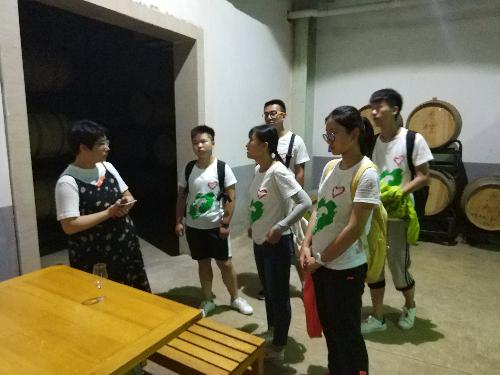 师姐为昌黎酒业发展调研队介绍储酒车间