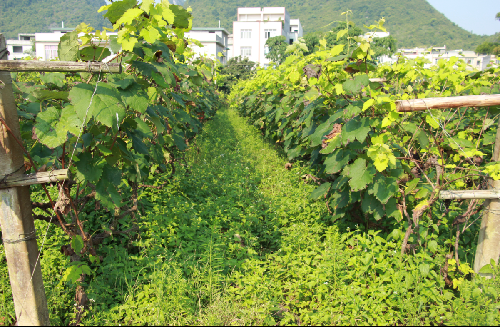 7月28日早上,西农赴广西葡萄酒酒庄调研队在热情好客的黄副总带领下前往参观当地的毛葡萄种植基地。种植毛葡萄也是当地居民的收入来源之一,所以沿途看到一片又一片葡萄园。来到种植基地后,发现基地位于山脚下,依山傍水,吸收天地之灵气,难怪用当地的毛葡萄酿出来的酒格外香醇清甜。