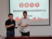 每一位研究生新生还收到了颇具特色的新生礼物——印有院徽的T恤、吊牌和印有学生姓名的酒刀、酒杯。“沧浪欲有诗味,酝酿才能芬芳”,房玉林院长借此题词,寄语同学们要带着“葡萄酒人”的烙印,拓宽专业视角,加强专业热情,培养69书吧