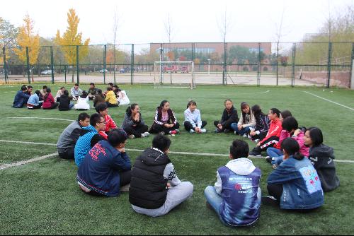 2017届团工委学生会于小足球场开展了别开生面的素质拓展活动,全体团学干部参加。