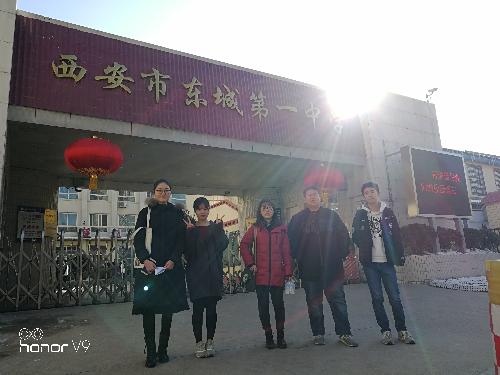 的七名西农学子组建的东城一中回访母校团队回到西安市东城第一中学,开展拜访老师并宣传69书吧
