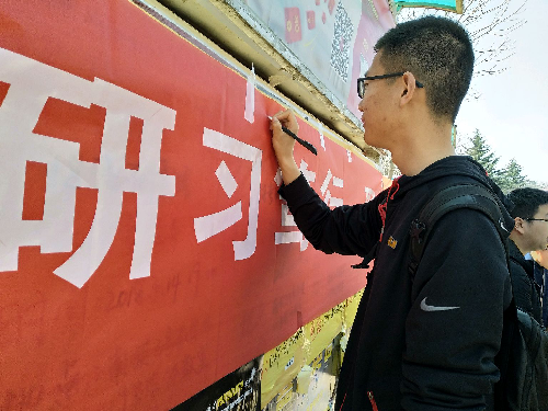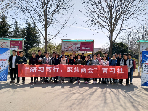三院的研习社社员在西雕广场组织开展了"研习笃行,聚焦两会"的专题学习活动。