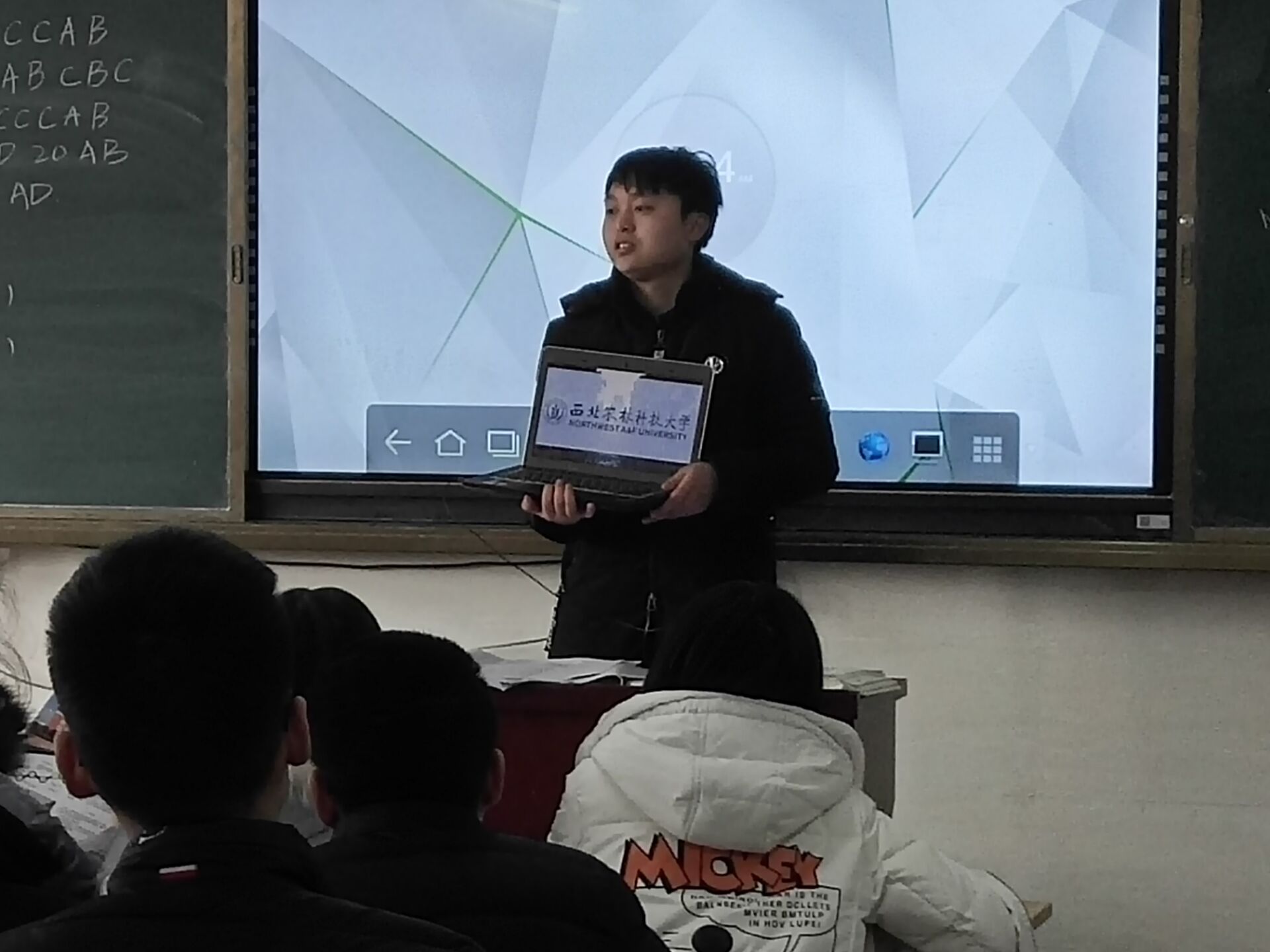 在宣讲时,我们为高三同学们播放了西农的宣传视频,并且李兆贺学长详细地为同学们展示,讲解了宣传PPT,让同学们对西农的文化背景、实力风采以及录取档次有了更清晰的认识,激起了同学们对大学生活的向往。除此之外,邵景娟学姐给同学们发了西农的宣传页及具有纪念意义的明信片,同学们表现出了很大的兴趣。