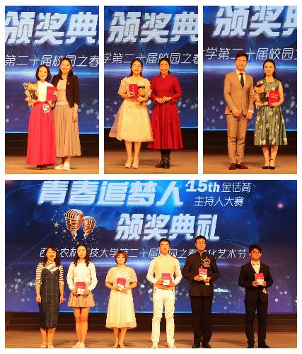 承办的第二十届“校园之春”文化艺术节之第十五届“金话筒”主持人大赛决赛于北绣山活动中心举行。杨凌电视台主持人高宇、校团委副书记欧渊博、校公共艺术教育中心刘威、植保69书吧