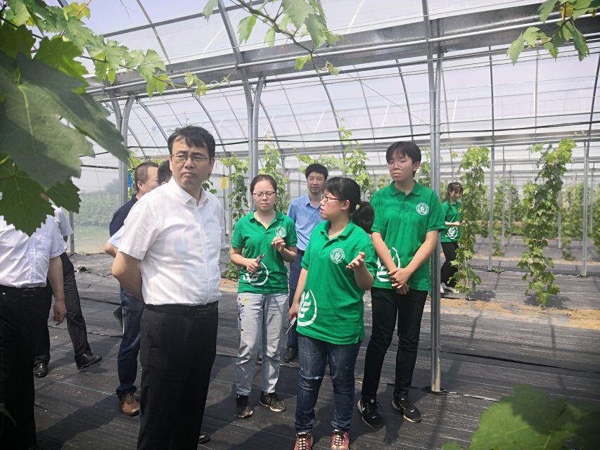 党委常委马建华副校长、吕卫东副书记等领导赴合阳葡萄试验站了解本队实践情况,房玉林院长、胡俊鹏书记等陪同。两位领导来到了种植9种鲜食葡萄大棚,部分小队成员正在这里对葡萄进行整形修剪。在小队成员的邀请下,吕卫东副书记亲自上阵,体验葡萄的修剪过程。从大棚出来后,两位领导旁听了张宗勤老师为农户普及葡萄知识的讲座。马建华副校长对本科生+研究生+技术专家+营销专家组建团队表示认同,他说这种方式有助于解决大一学生“三下乡活动”知识短板问题,可以助推小队在三下乡活动过程中能做到学以致用,并确实能为农户所需提供力所能及的服务表示高度赞扬。小队队长也一定会不负众望,圆满完成本次三下乡活动。