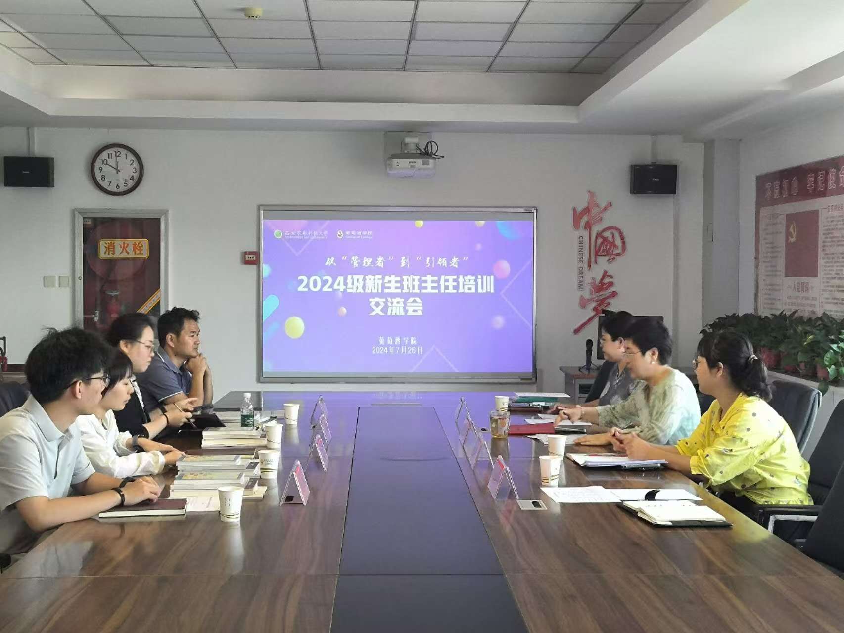 竞赛、保研考研等具体工作为新生班主任提供了指导和建议。随后,辅导员王雅楠做班主任工作实务培训,从瞄准班主任角色定位、明确学生培养目标任务、用好三项教育平台、开好第一次班会等方面详细讲解了工作内容和注意事项,并结合具体案例进行了研讨交流。