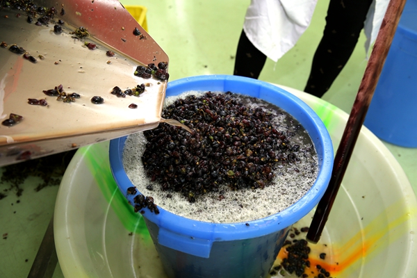在陶永胜、秦义、宋育阳和靳国杰等老师们的指导下,学生们通过亲手操作掌握葡萄酒酿造的基本技能,独立完成葡萄酒酿造的全过程,独立分析和解决葡萄酒酿造中存在的问题。赤霞珠、梅尔诺、品丽珠、爱格丽、雷司令、霞多丽等人们耳熟能详的葡萄被成筐的采运回学校,在师生们的手里完成华丽的转变:由一串串葡萄变成一罐罐红的、白的、桃红的美酒。