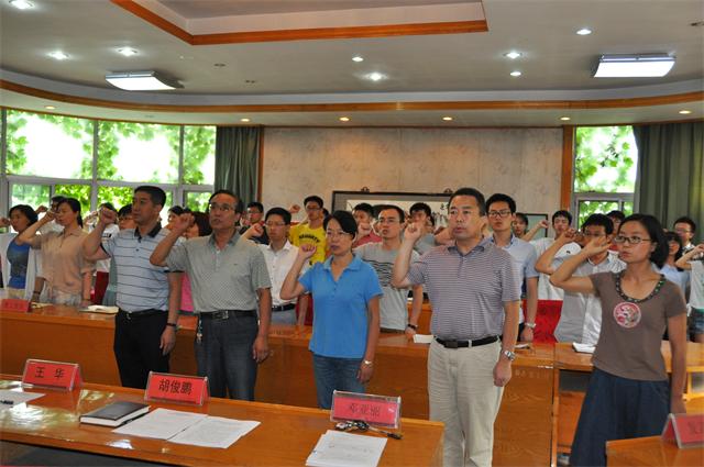 党务秘书钱殷同志领誓,党委书记胡俊鹏、党委委员王华、张振文、刘树文、邓亚丽和27名预备党员、20名正式党员面向鲜红的党旗,庄严地举起右手,向党宣誓,表达了严守誓言、争当优秀共产党员的决心。 预备党员代表刘瑞同志发言,表达了对党的教育和培养的感谢之情,并号召全体党员严格要求自己,不断加强党性修养,在工作、学习、生活中起到模范带头作用。 胡俊鹏书记带领全体党员简要回顾了建党94年来走过的光辉历程和取得的丰功伟绩,总结了现阶段69书吧