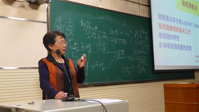 院长王华教授主讲,讲授主题是葡萄酒概论,主要从葡萄酒及其分类、葡萄酒酿造的基本工艺、葡萄酒的特性及影响葡萄酒质量的因素四个方面进行介绍。王华教授讲课生动形象,妙趣横生,课堂氛围热烈,王华教授不断抛出问题并循循善诱同学们结合自己的生活实例思考探究得出答案。