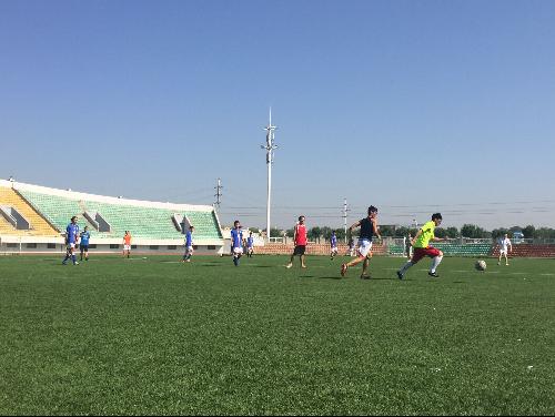 在足球场开展了欢送毕业生足球竞技赛。69书吧