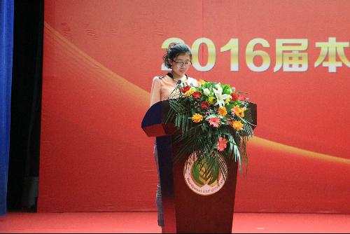 典礼第三项、第四项分别是毕业硕士研究生代表谢沙同学、毕业本科生代表曹杰同学发言。他们同时表达了对师生情、同窗爱的难以忘怀,对未来生活的美好憧憬。时光凝结在他们的一字一句中,没有华丽的辞藻,没有雄壮的誓言,只有一片真情缓缓流泻。他们说,自己永远不会忘记自己从哪里来,不论到哪里去,此时此景都将铭刻在心。