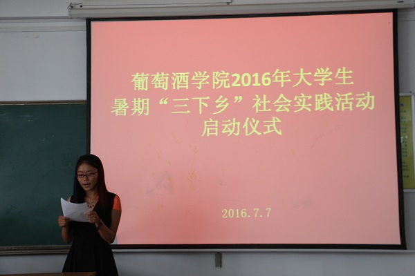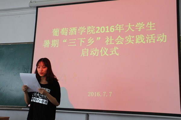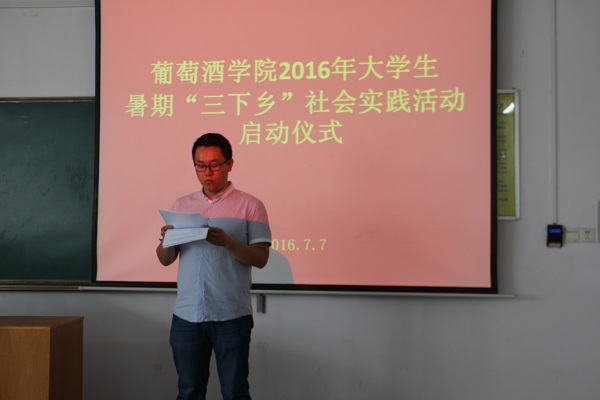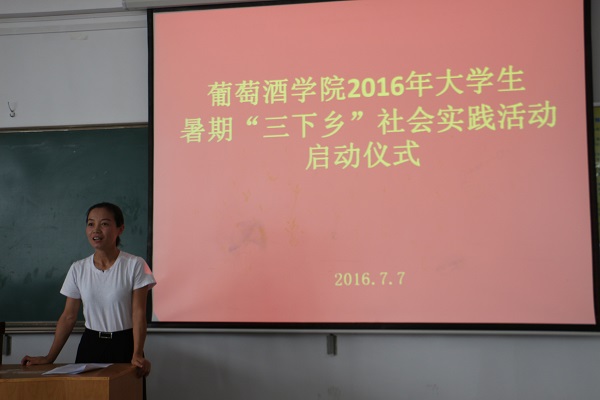 最后,邓亚丽副书记从专业学习需要实践、认识社会需要实践、个人成长需要实践等方面强调了“三下乡”实践锻炼的重要性。邓老师指出,社会实践是接触社会、了解社会的重要途径,是专业学习和实践教育的重要组成部分,作为对实践能力有较高要求的葡萄与葡萄酒工程专业的学生,应抓住一切机会积极投身实践锻炼,通过实践了解社会、认识专业、成长自我。同时,邓老师要求全体团队负责人以此次启动仪式为契机,认真按照“科学谋划、目标管理、信息在线、过程控制”的原则对每支团队的工作任务进行统筹计划,合理分工,确保实践目标的充分实现。邓老师还就暑期实践安全的注意事项进行了特别强调。