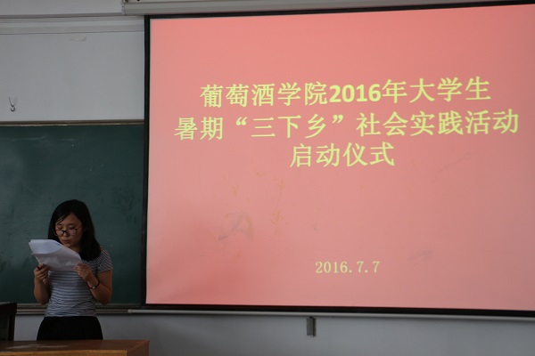 暑期“三下乡”社会实践活动的组队情况。本次活动以我院学生为主体、各院学生为补充,学生自发组建了包括葡萄酒产区调研、传统文化实践等十一支团队,其中10支团队获校团委资助立项。在这10支团队中,由我院2014级陆佳玲同学负责、陶永胜教授指导的“贺兰山东麓葡萄酒产业的‘小酒庄,大产区’发展模式调研团队”脱颖而出,在获评校级重点项目立项的基础上,代表我校唯一入选“2016年陕西高校大学生暑期‘一带一路’社会实践项目”,把我院暑期社会实践活动推向了新高度。