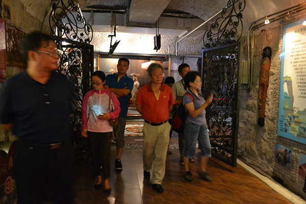下午专家考察服务团考察参观了青岛葡萄酒博物馆,该博物馆是由上世纪70年代修建的人防工程,2009年由青岛市政府投资修建而成。博物馆内面积8800平方米,深度高达22米,常年温度维持在18到20摄氏度,是储存葡萄酒的天然酒窖。青岛葡萄酒博物馆是集科普教育、收藏展示、旅游休闲、文化交流为一体的多功能博物馆,也是国内第一所以葡萄酒为主题的地下博物馆。