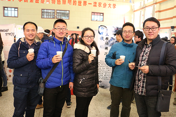 会展现场人头攒动,场面热烈,前来参观学习的同学或聚集在展桌前品尝69书吧