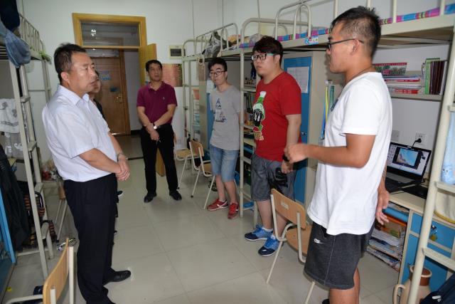 在2017届毕业生离校前夕,我院党委书记胡俊鹏、副院长刘树文、党委副书记邓亚丽、辅导员赵星宇老师,朱美蓉老师,于6月19日下午六点半前往我院男女生宿舍,与毕业生亲切交流。
