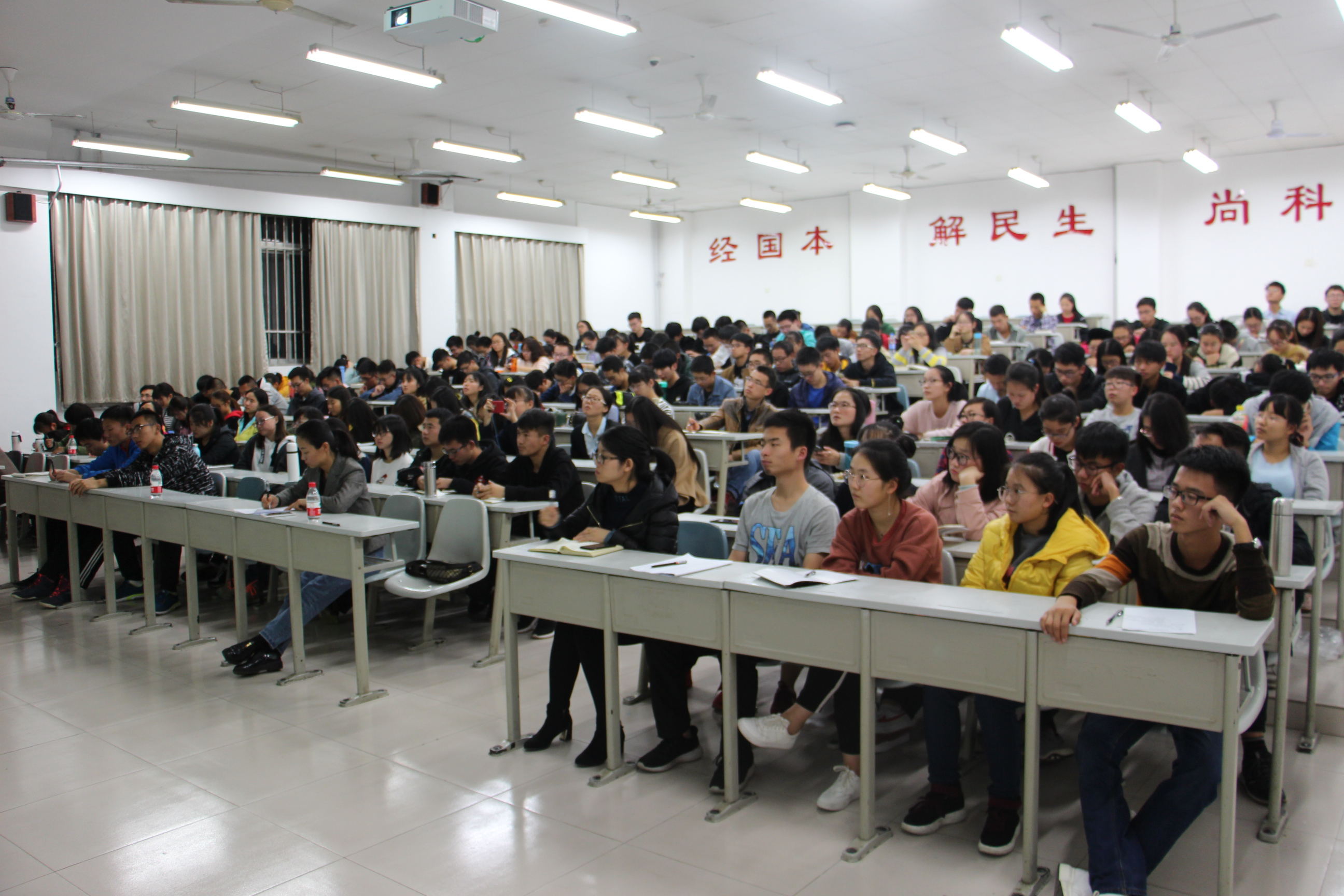 党委副书记邓亚丽主持,包括我院学生在内的全校200余学生聆听了报告会。