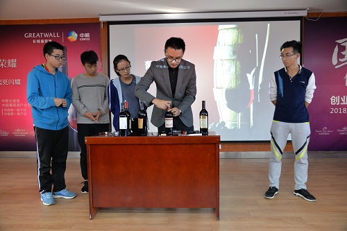 宣讲会正式开始前,中粮葡萄酒团队组织到场学生进行了关于长城葡萄酒基本问题的抢答,同学们的精彩回答展现了大家对中粮酒业的关注与向往。随后,长城葡萄酒事业部副总经理盛国红女士介绍了中粮集团、中粮酒业基本情况,重点展示了中粮酒业的品牌实力与企业实力。长城葡萄酒事业部总经理助理刘鑫先生分享了中粮酒业的技术研发、明星产品以及明星团队。长城葡萄酒事业部华夏工厂常务副总经理杨雪峰先生讲述了自己在中粮酒业的成长历程,分享他“因为热爱,所以快乐”的职称生涯。长城葡萄酒事业部总经理李士祎先生的演讲将宣讲会推向高潮,李先生和同学们分享了自己在销售领域的奋斗历史,描述了自己心中的营销培训生所应具备的素质和能力。李先生强调,学好专业是一切工作的起点,建议同学们在学习期间用踏实、努力、耐住寂寞的品质,在专业领域大胆涉猎,悉心钻研,用自己的专业实力服务于中国乃至世界葡萄酒产业的发展。