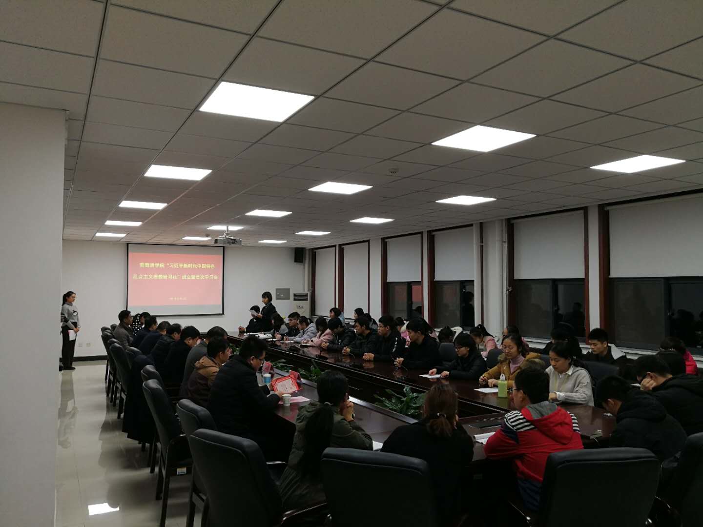 党委副书记邓亚丽全面介绍了研习社创社缘由、参加初衷、学习方式及发展愿景。研习社社长丁思悦代表全体社员表达了以研习社为平台坚定全院青年理想信念的信心和决心。党委组织部部长陈玉林、校团委书记曹军会为研习社指导教师杨鹏、赵星宇颁发指导教师聘书。