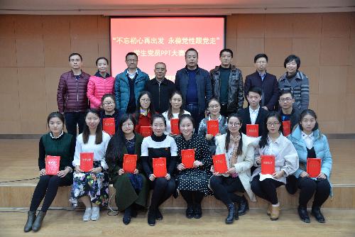 “不忘初心再出发 永葆党性跟党走”学生党员PPT大赛决赛在北绣山南报告厅举行,学院党委委员、各党支部成员、入党积极分子及各团支部书记参加大赛。