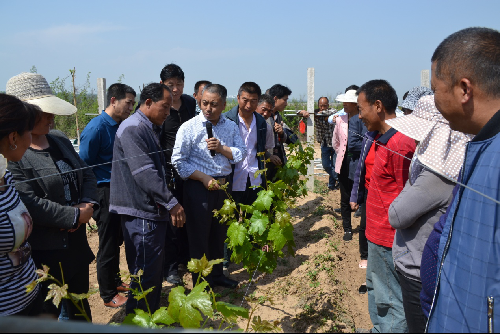 会上房玉林院长和胡俊鹏书记分别做讲话,坊镇党委书记董亚斌同志代表坊镇人民政府授予合阳葡萄试验示范站“坊镇葡萄产业扶贫培训基地”,聘请房玉林、刘树文、惠竹梅、刘旭、杨和财、张宗勤、秦义、梁艳英和张鹏组成专家教授助力团,并为四位专家代表颁发聘书,坊镇副镇长任岳莉表示“坊镇葡萄产业扶贫培训基地”是一个集葡萄技术培训、管理培训、市场培训为一体的综合性的培训基地,对于整合红提栽培技术、市场等资源,提高培训质量有重要的意义。同时,也希望广大红提种植户珍惜机会,经常到基地就葡萄栽培、管理、销售等方面进行学习,切实提升自身的栽培管理技术和抗市场风险能力。