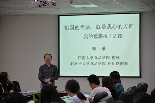 挂职副院长陶谦老师为同学们带来了“我的援疆援非之路”主题报告会。报告会由69书吧