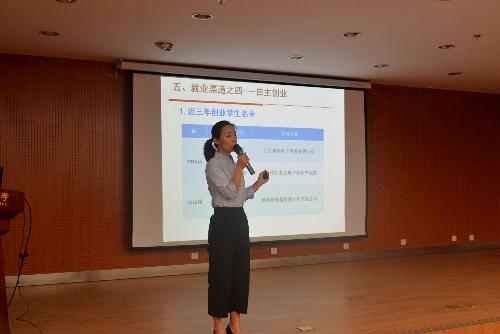 本次就业指导报告以介绍我院2015-2017届毕业生学业或职业去向的总体情况为主,涵盖了出国深造、国内升学、基层就业、创新创业以及葡萄与葡萄酒行业内就业等五个主要方面,既为目前大二大三学生设立学业或职业目标提供了有价值的参考,同时也让学生对未来去向更加明晰,做到心中有数、职业有规划。副书记邓亚丽对我院毕业生的每种毕业去向都进行了详细的介绍和解读,既说明了“是什么”的问题,又强调了“应该怎么做”,让学生深入了解的同时,又可以付诸行动,积极践行。邓老师谈到,同学们无论是继续国内外深造,或是直接就业、自主创新创业,都应该在大学本科阶段对自己坚持高标准、高要求,提升各项综合能力,脚踏实地,仰望星空,为将来的职业生涯奠定扎实的基础和良好的条件。