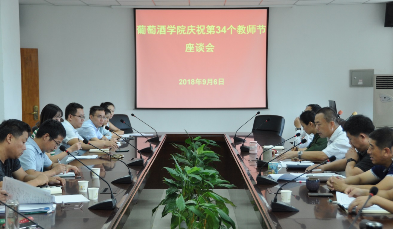祝全院老师教师节快乐,并表示我院今年在教学方面取得的成绩有目共睹,其中王华老师获得“陕西省高校教学名师”荣誉称号,刘延琳团队获得陕西省教学成果一等奖,惠竹梅获得“我最喜爱的导师”称号,靳国杰获得全校“课程思政大练兵”第八名。房院长以贺普超老师留苏、李华老师留法,以及王华老师求学工作的经历教育大家要有葡萄酒人的家国情怀,还以沈忠勋老师、张振文老师的事迹激励老师们师德为先、率先垂范,甘当69书吧
