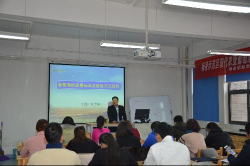 培训注重理论与实践相结合,张予林副教授为学员讲授葡萄酒质量标准、葡萄酒常规理化指标分析方法及注意事项,并根据学员的要求,增加了单宁和总酚及蛋白的测定。为了增强学习效果,让学员在实验室边操作边讲解。郭安鹊副教授为学员讲授葡萄酒感官质量及分析方法,李运奎博士讲授了葡萄酒花色苷、酚类物质对葡萄酒质量的影响及其检测方法,杨和财副教授就葡萄酒法规体系位学员进行了较为系统的培训。