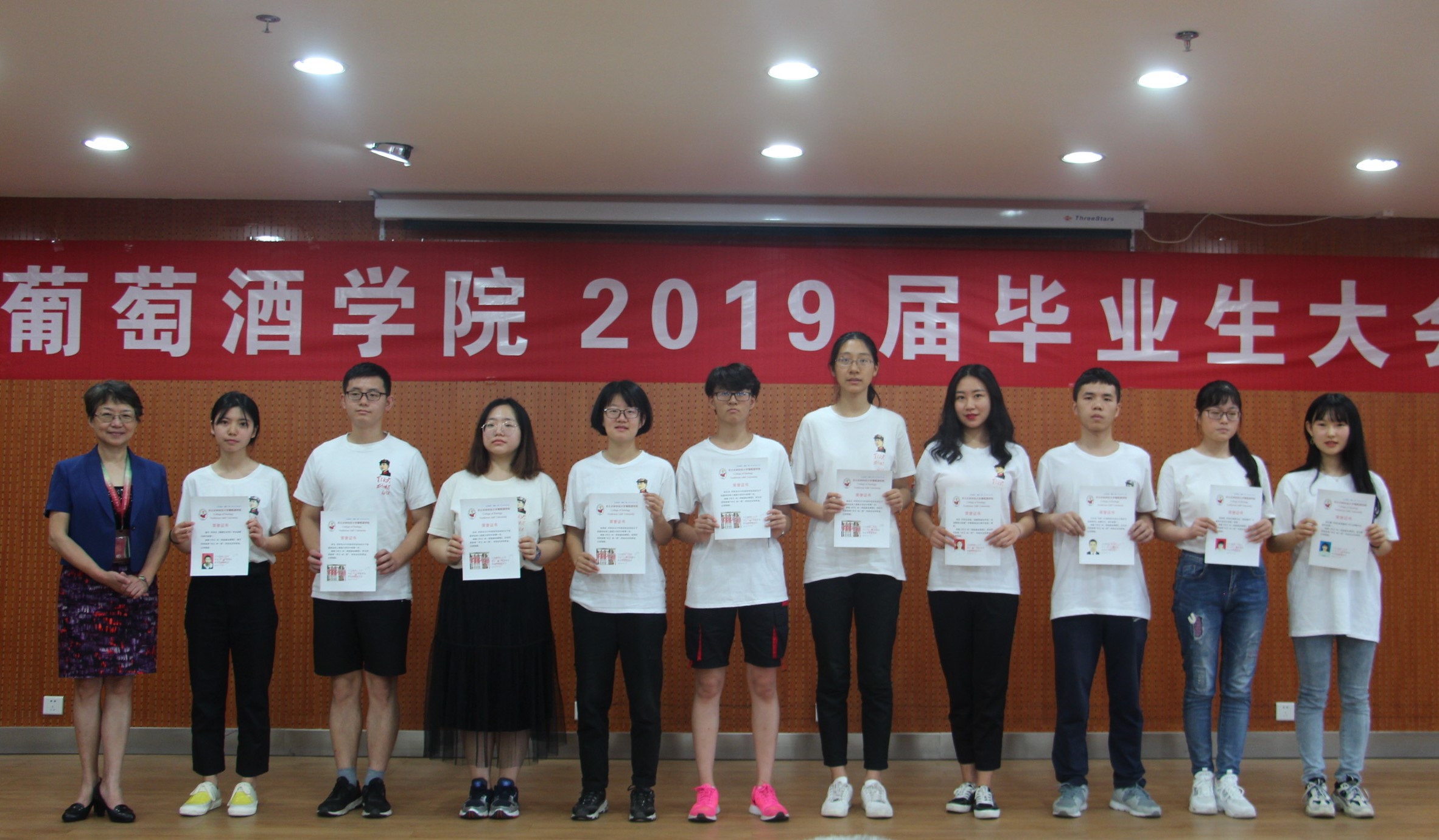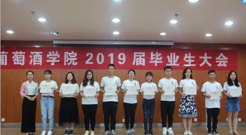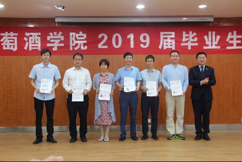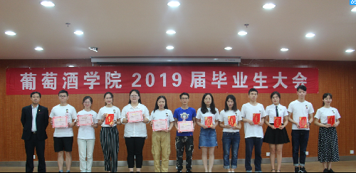 的教诲之恩,教师代表孟江飞副教授为全体毕业生送上了拳拳叮嘱和殷殷希冀。 最后,大会对先进个人进行了表彰。刘树文副院长为2019届兼职校友联络员颁发聘书,王华教授为获奖学生颁发华王NO.1奖励金证书,邓亚丽副书记为获奖学生颁发萨意·卓越葡酒人培育基金证书,LAFFORT公司陈云海先生为获奖学生颁发LAFFORT奖学金证书, 陶永胜教授为69书吧