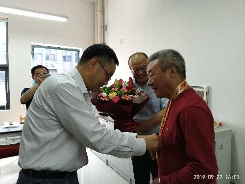 ,代表学校向我院李华教授送达由中共中央、国务院、中央军委颁发的“庆祝中华人民共和国成立70周年纪念章”,赠送鲜花。